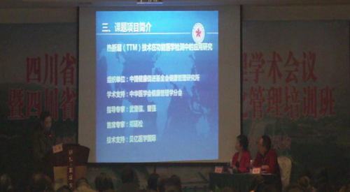 會(huì)議期間,陳剛主任詳細(xì)介紹了“熱斷層(TTM)技術(shù)在體檢人群疾病篩查及風(fēng)險(xiǎn)評(píng)估中的應(yīng)用”多中心研究項(xiàng)目,該項(xiàng)目是由中國(guó)健康促進(jìn)基金會(huì)委托、中國(guó)健康促進(jìn)基金會(huì)健康管理研究所牽頭、中華醫(yī)學(xué)會(huì)健康管理學(xué)分會(huì)進(jìn)行學(xué)術(shù)支持,于2013年9月在“第三屆全國(guó)健康管理示范基地建設(shè)研討會(huì)”上正式發(fā)布,課題的學(xué)術(shù)指導(dǎo)專家由中華醫(yī)學(xué)會(huì)健康管理學(xué)分會(huì)主任委員武留信教授、中華醫(yī)學(xué)會(huì)健康管理學(xué)分會(huì)候主任委員曾強(qiáng)教授擔(dān)任,其目標(biāo)為旨在促進(jìn)熱斷層(TTM)技術(shù)在體檢人群疾病篩查及風(fēng)險(xiǎn)評(píng)估中的應(yīng)用發(fā)展。此項(xiàng)目通過(guò)利用熱斷層(TTM)技術(shù),經(jīng)過(guò)大量臨床研究和分析,對(duì)乳腺疾病、肺部疾病、肝臟疾病、心血管疾病、腦血管疾病和甲狀腺疾病等健康管理項(xiàng)目進(jìn)行檢測(cè)監(jiān)測(cè)、風(fēng)險(xiǎn)預(yù)測(cè)、預(yù)警與評(píng)估,建立熱斷層(TTM)在健康管理和體檢應(yīng)用中的診斷標(biāo)準(zhǔn)、風(fēng)險(xiǎn)評(píng)估及早期干預(yù)等技術(shù)行業(yè)規(guī)范等目的。本項(xiàng)目的技術(shù)支持由貝億醫(yī)學(xué)國(guó)際提供。